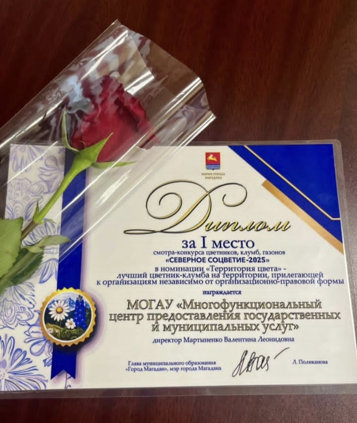 Вот уже четвертый год подряд наши сотрудники творят чудеса на прилегающей территории, превращая обычные клумбы в настоящие произведения искусства. В этом году конкурс «Северное соцветие» вновь подтвердил уникальность нашего подхода: МФЦ занял первое место в номинации "Территория цвета"